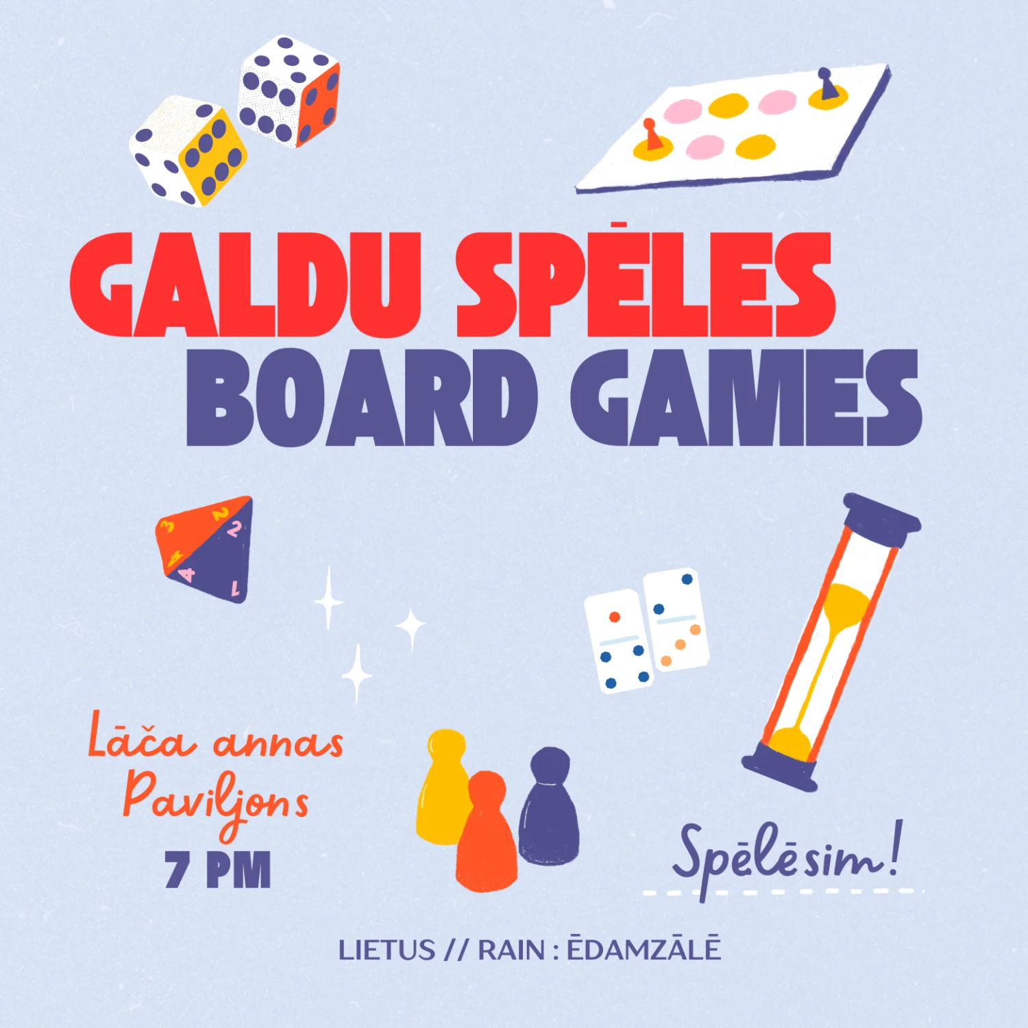 Jautru galdu spēļu vakars visiem — no klasiskām līdz jaunām spēlēm, nāc spēlēt, atpūsties un pavadīt laiku kopā.