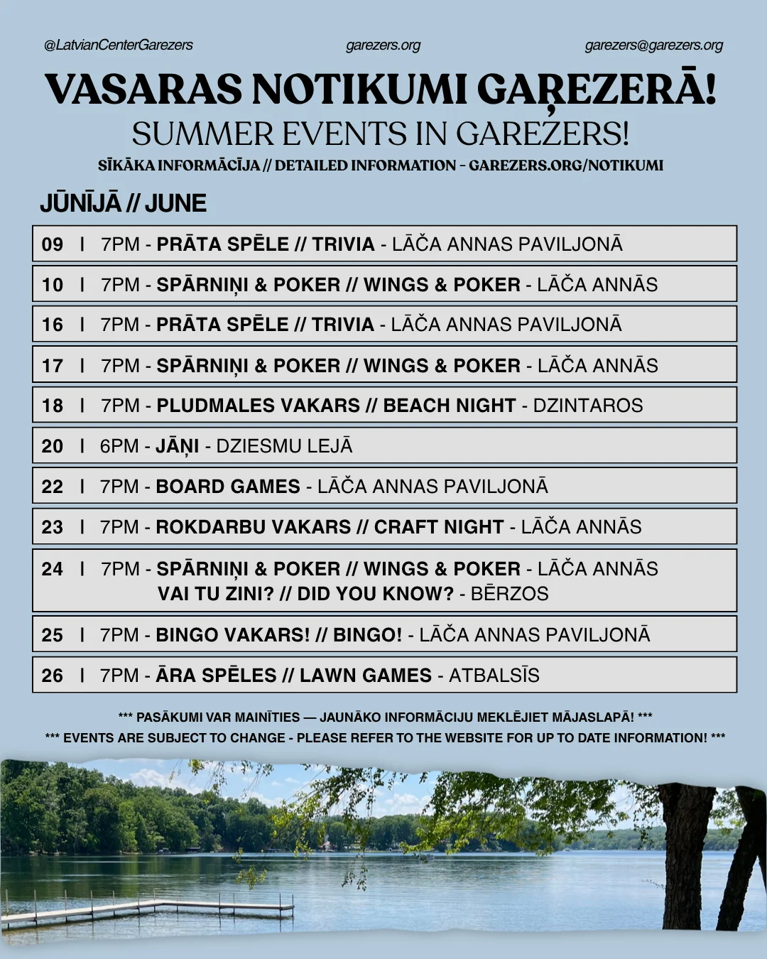 Lietus gadījumā, vakara būs atcelts // In case of rain, the event will be canceled.